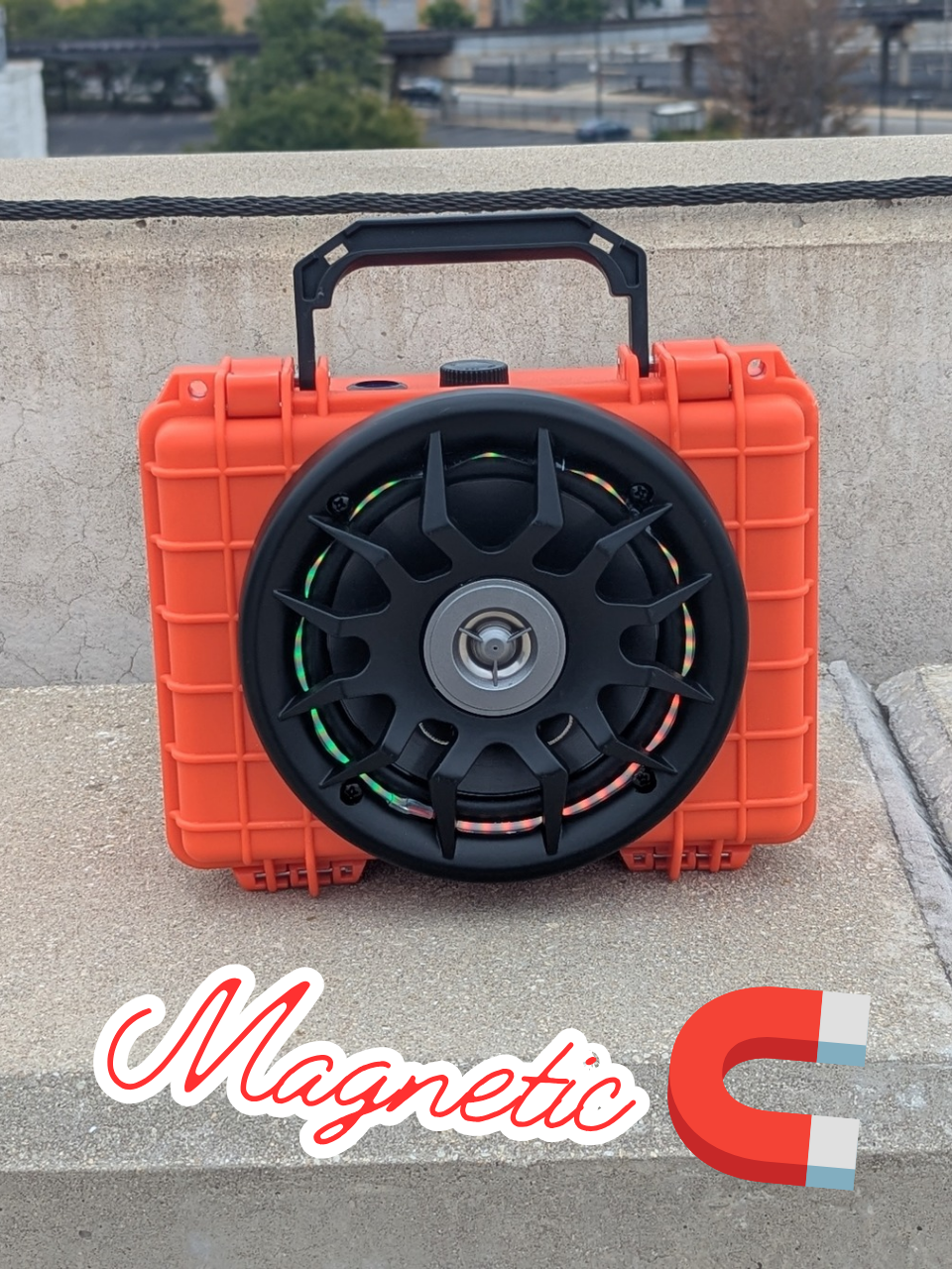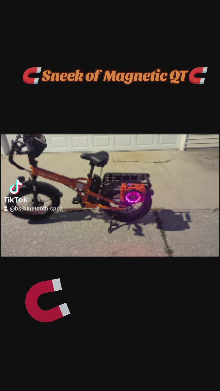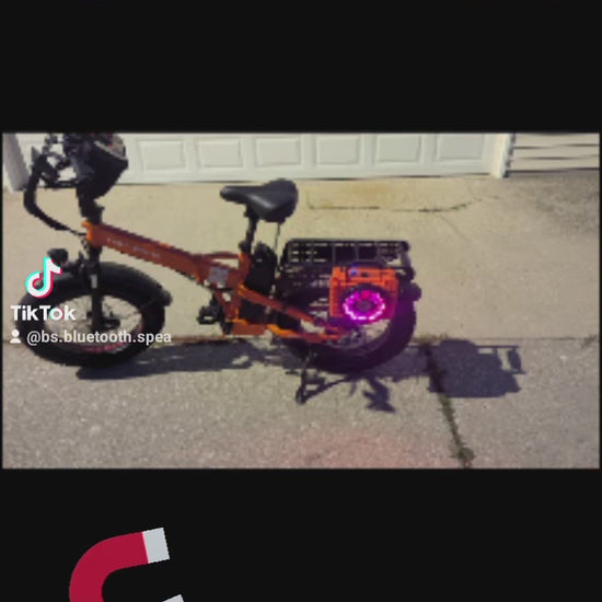 Magnetic 🧲 is a rugged weatherproof Bluetooth Speaker or Speakers when (two are connected for stereo (Twinned)). The unique magnetic 🧲 can be stuck to any metal objects with it's built in magnets. They can be stuck to ebikes, canopies, trucks, golf carts the possibilities are limitless. Now let's talk about magnetic's 🧲 speaker. It is loud and clear! Perfect for any ride or party!! It's lightweight and comes with a built-in carry handle for portability to enjoy anywhere! The case colors are Black, light blue and orange. The speaker grill cover colors are Black or silver.