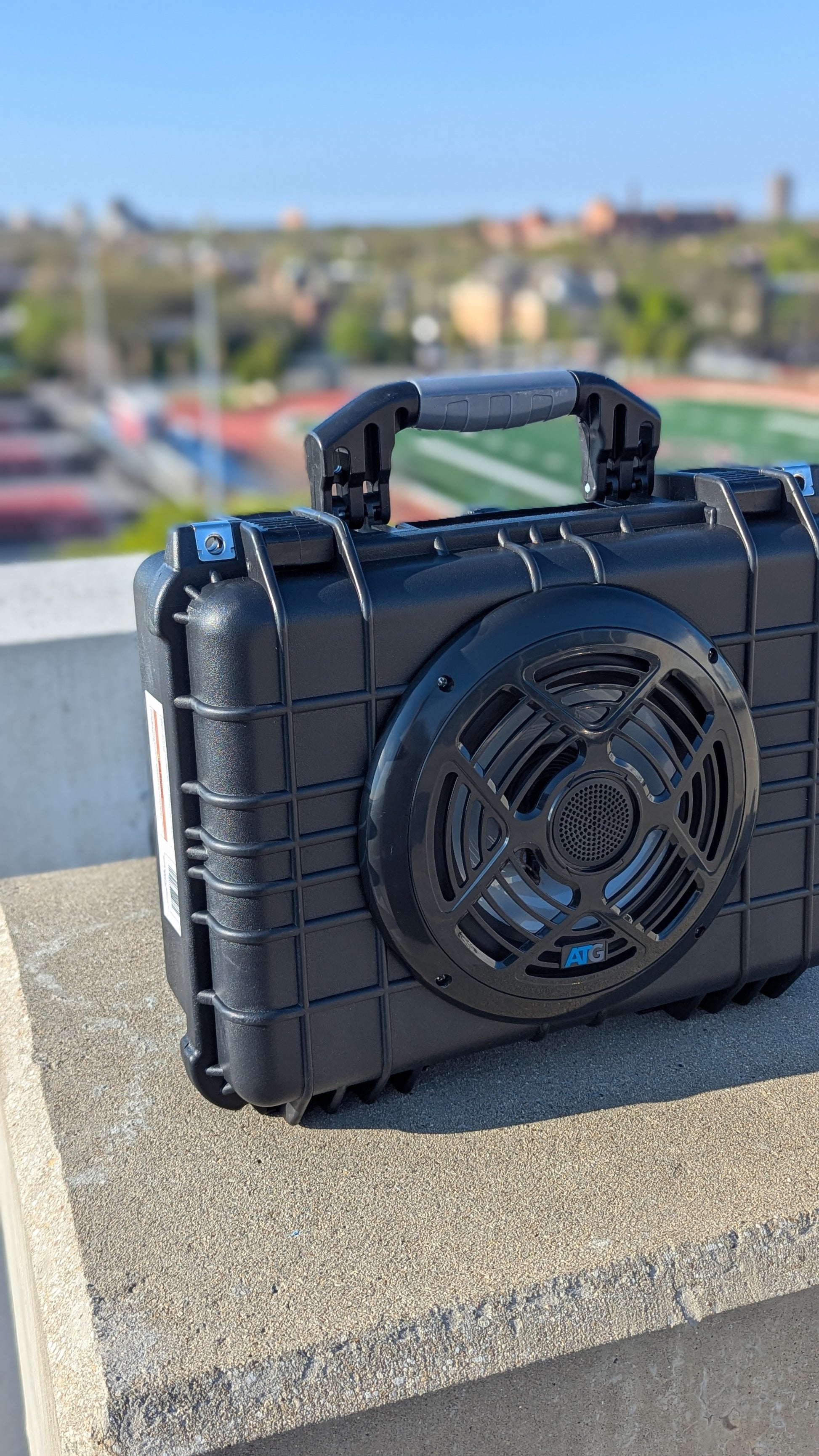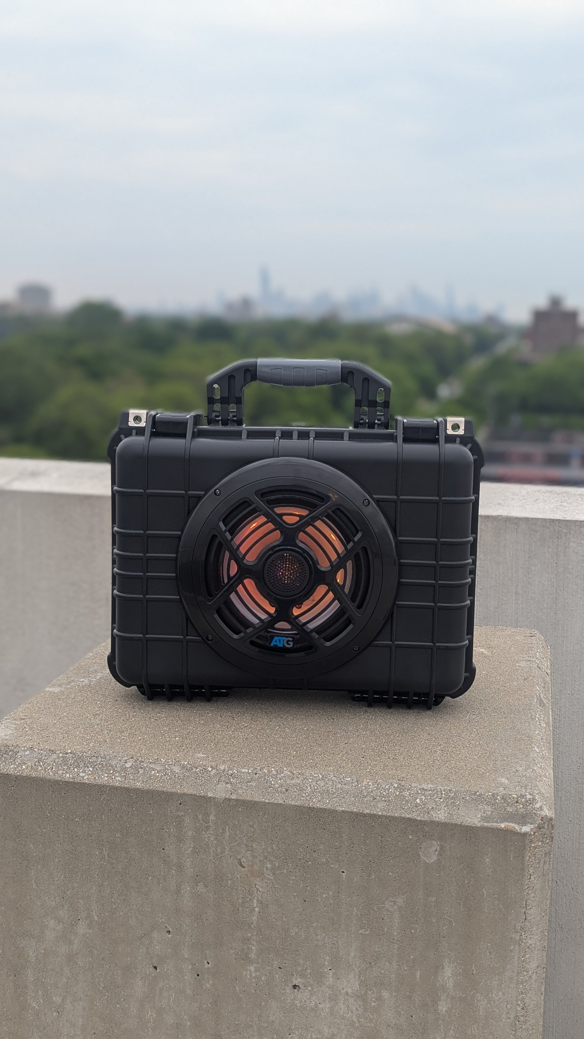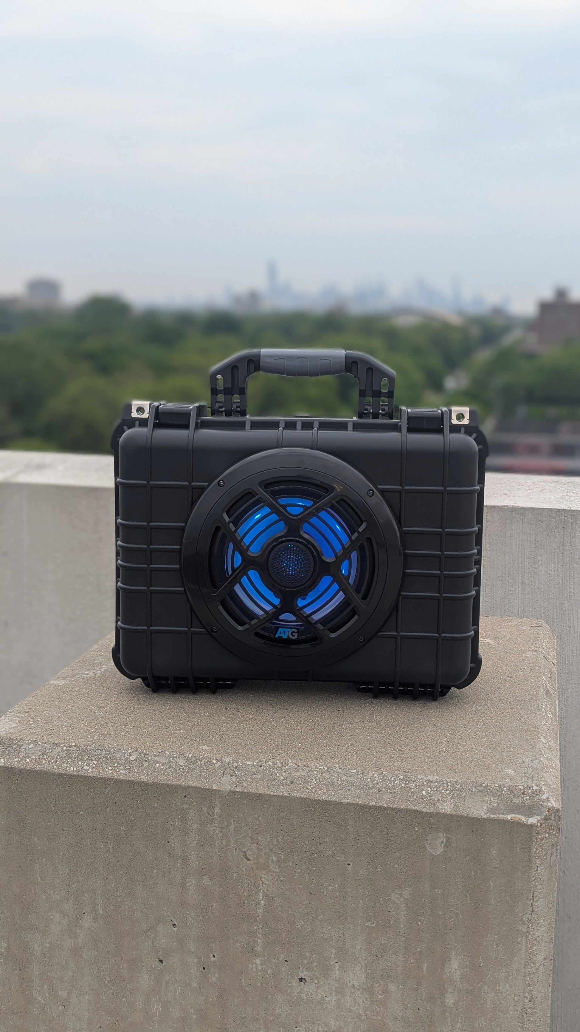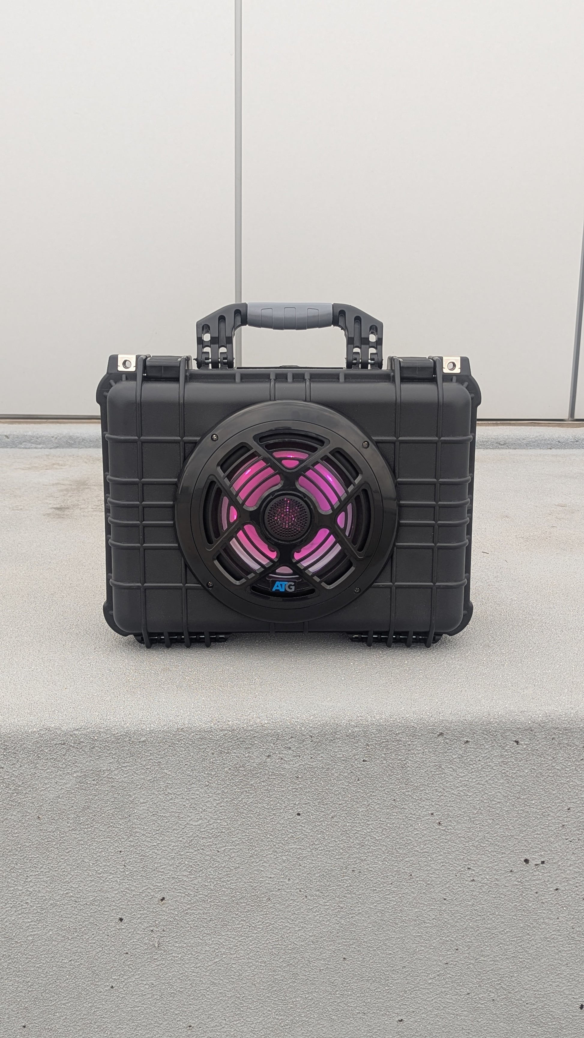 A weather proof design. The OCHO Boombox features and 8inch speaker that is loud and produces BASS! The OCHO is powered by a rechargeable battery that last over 8 hours. The OCHO has LED lights to keep the party going! The OCHO is rugged, powerful, weatherproof BoomBox ready for any occasion!